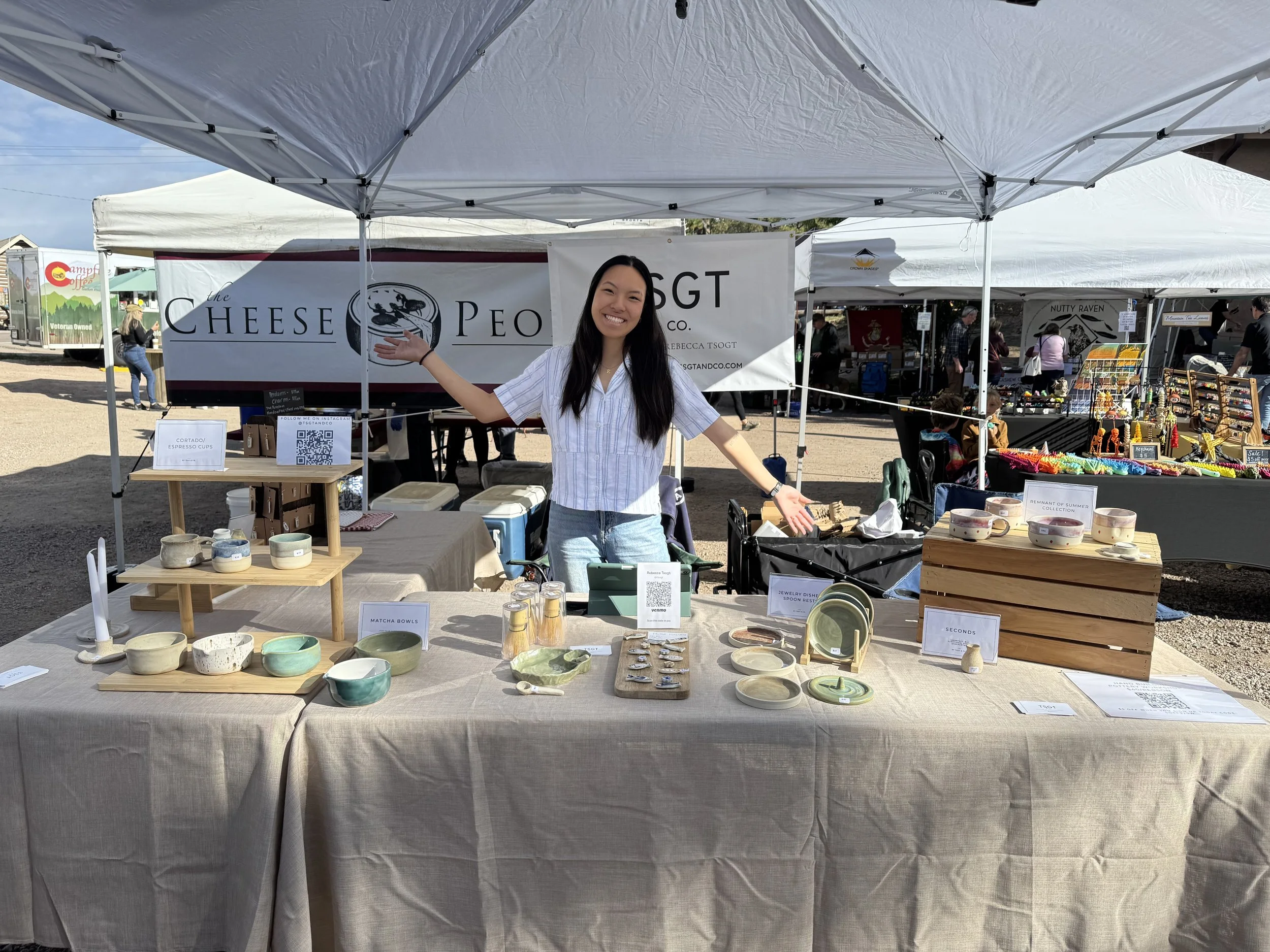 My pottery journey started in January of 2023 where I took a few classes with my husband. I was instantly hooked and dreamed about the endless possibilities that pottery could bring. Since then, I have worked hard to increase my knowledge in pottery by immersing myself in community studios and engaging in conversation with other ceramic artists all around the world. I now work out of and teach from my home studio here in beautiful Colorado Springs, Colorado. Find my work at Wayfinder Coffee Co. and Dynamo Coffeehouse, I sell occasionally at markets and host workshops too!